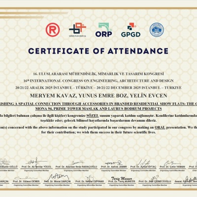 Ekibimizden Meryem Kavaz, Yunus Emre Boz ve Yelin Evcen ile birlikte hazırladığımız “Markalı Konut Örnek Daire Projelerinde Aksesuar ile Mekânsal Bağ Kurmak: Mona 94, Prime Tower Maslak Ve...