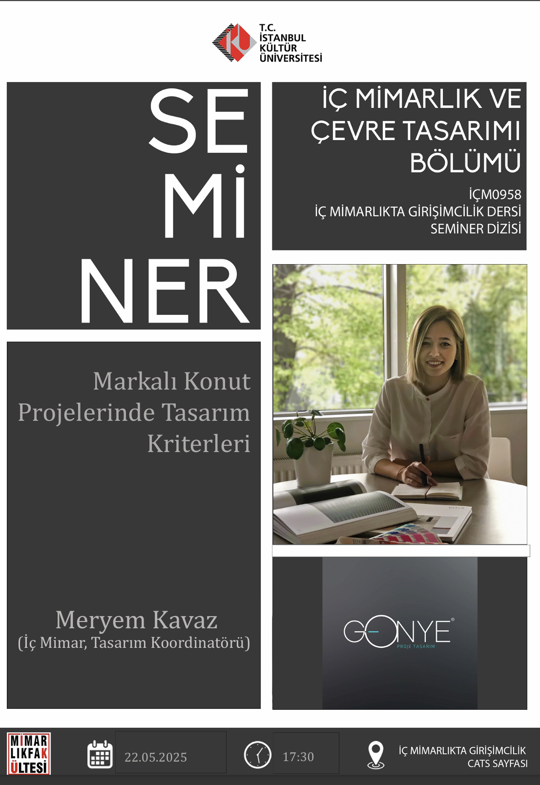 İstanbul Kültür Üniversitesi İç Mimarlık ve Çevre Tasarımı Bölümü'nde "Markalı Konut Projelerinde Tasarım Kriterleri" adlı seminer verilmiştir.
